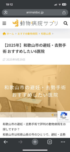 「【2025年】和歌山市の避妊・去勢手術 おすすめしたい6医院」に当院が掲載されました!