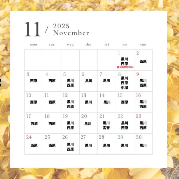 11月1日(土)PM、11月2日(日)、11月15日(日)は院長がお休みとなります。